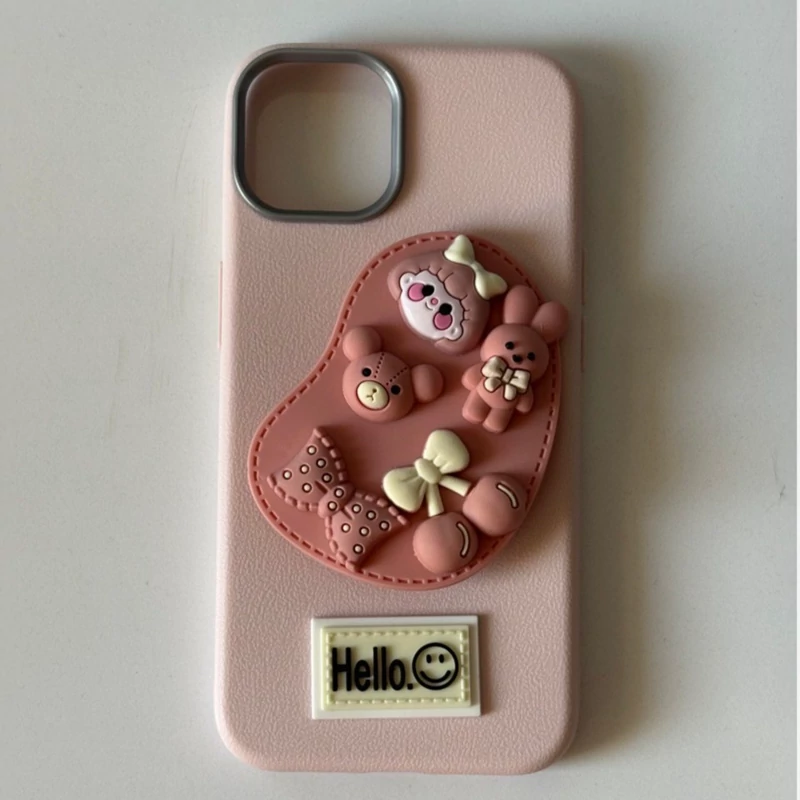 قاب گوشی ایفون iphone 13 چرمی سه بعدی برجسته عروسکی Hello mode